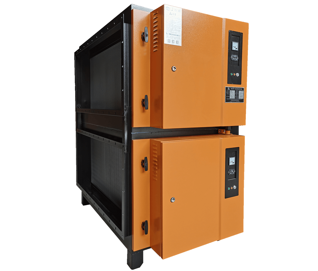 利用高壓電場(chǎng)原理,通過高頻電源裝置與靜電組合模板一一對(duì)應(yīng),形成電場(chǎng)分布,使油煙粒子荷電后在另一極板上吸附,從而對(duì)油煙粒子及粘性粉塵進(jìn)行高效捕集,并對(duì)氣味進(jìn)行分解凈化。